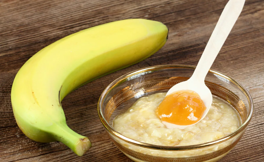 • Mash one ripe banana until it becomes a smooth paste.